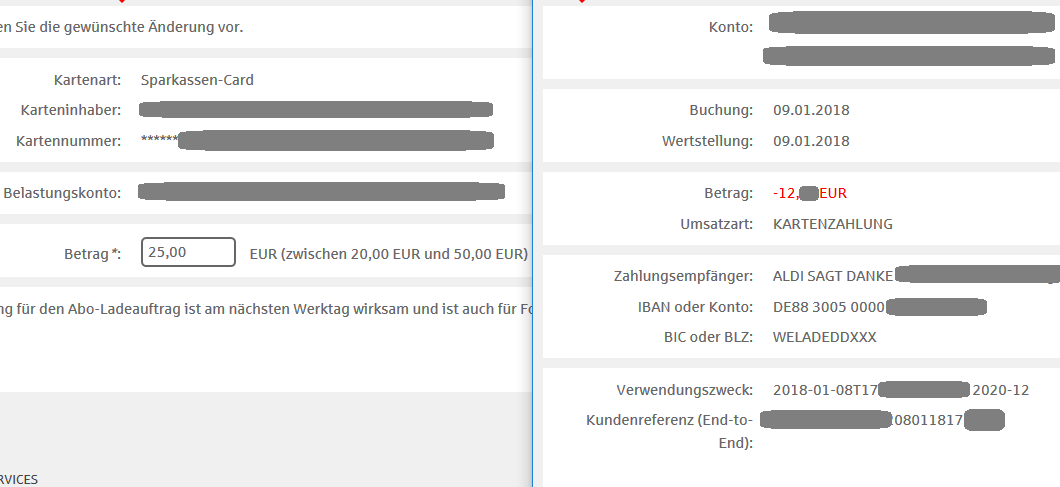 Anbei ein Screenshot, ich gehe von der Autoaufladefunktion aus. In den Giroumsätzen sieht das allerdings wie eine normale Lastschrift aus.