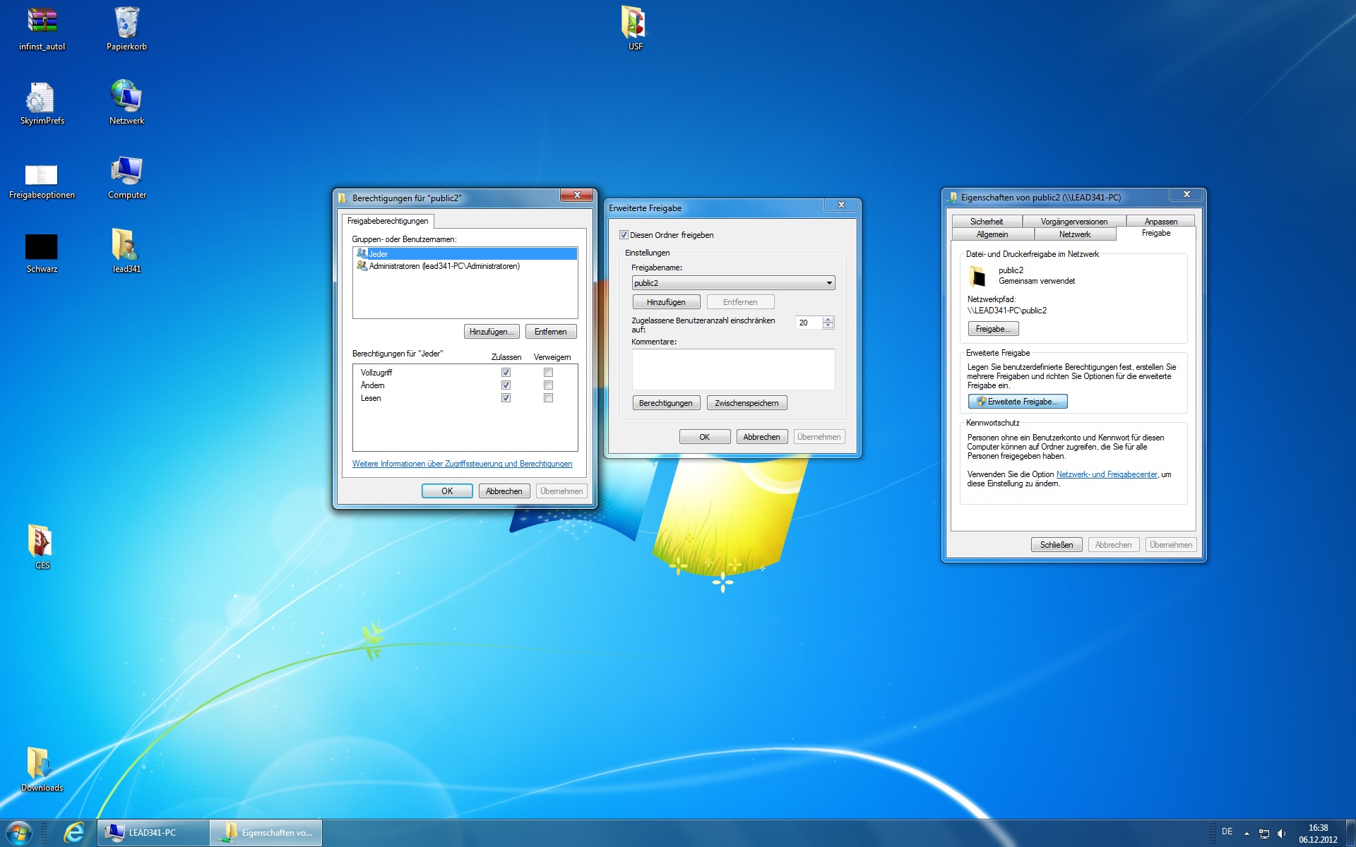 "Auf....public 1 konnte nicht zugegriffen werden". Unter details steht dann Fehlercode "0x80070005, Zugriff verweigert". Ich habe die kennwortgeschützte Freigabe auf Rechner 1 ausgeschalten.