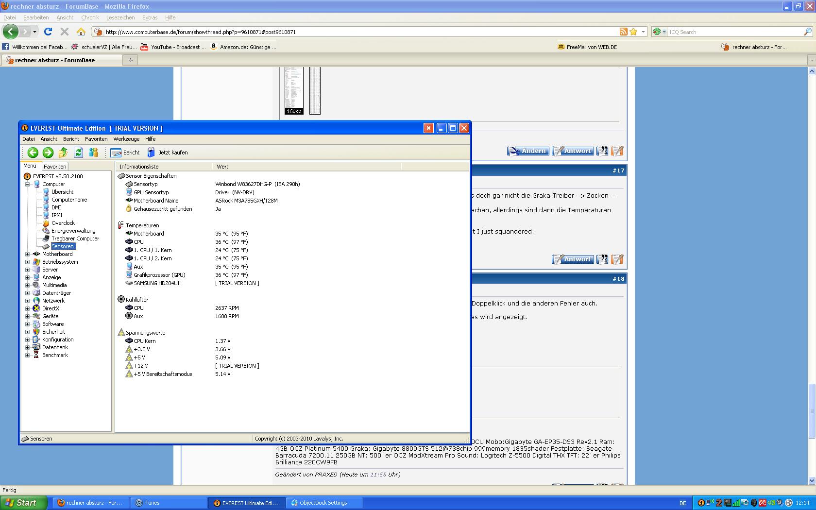 habe combat arms ca 5-6 stunden gespielt danach war ich ca 1 stunde auf meinem destop (musik gehört ,facebook ,skype neben bei noch wegame ,hamachi ,amd fusion ,logitech monitor manager ,lcd studio) also eig nichts weiter wildes.