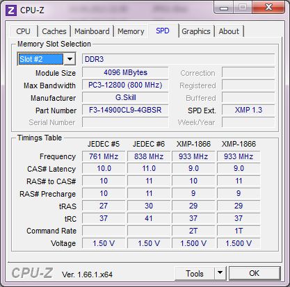 Hier wundert mich halt das die Werte nicht stimmen können. Memory Type und Speed sind eigentlich größer. Laut Hersteller Angabe ist es ein DD3 1866 PC3-14900. Aber weder in CPUz noch in SIW bekomm ich den Wert.