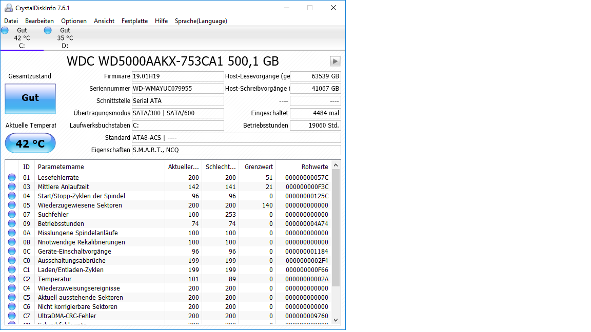 HDD (Steht in Chrystal disk. Die zweite Platte ist bloß eine externe)