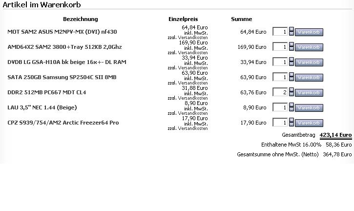 Hier missfällt mir vor allem, dass es kaum vernünftige Lüfter zu geben scheint. Entweder sind die laut oder leise und teuer. Bei Sockel 939 bekommt man den Arctiv mit TC für 10 Euro.