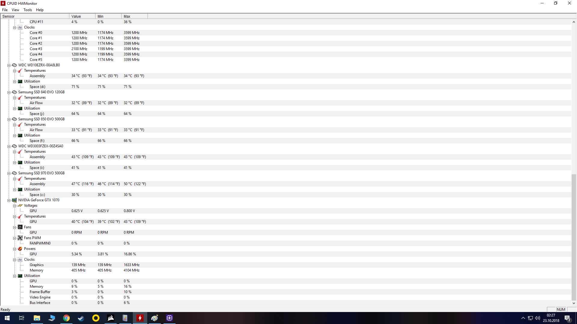 Ich habe Bilder von HW Monitor im Anhang unter Bild 2 und 5 im Anhang
