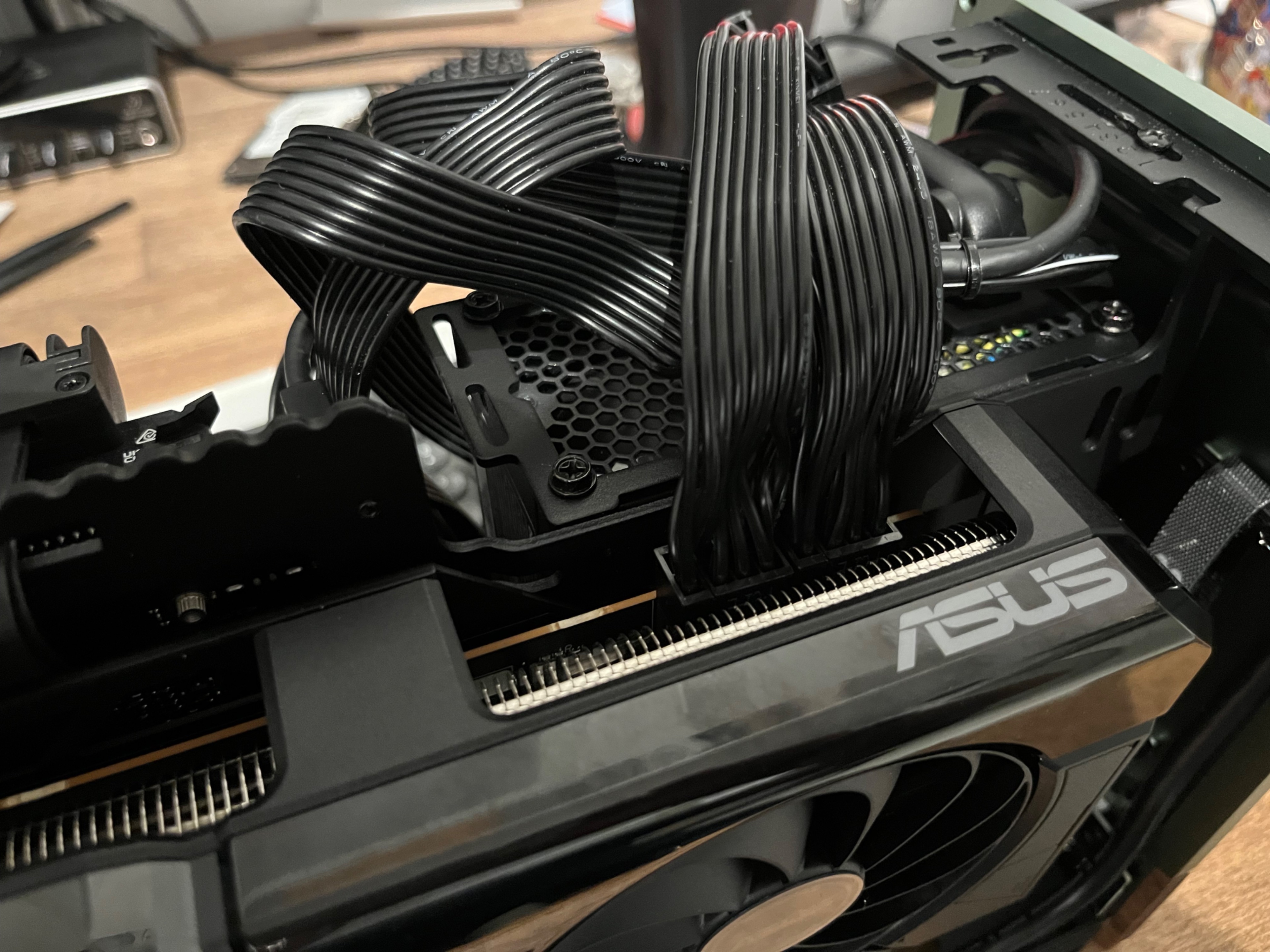 -> Ich vermute daher, dass GPU und PSU in Ordnung sind und die Leistung der PSU ausreichen sollte. - Ich habe alle Steckverbindungen geprüft, sowohl den Sitz der GPU als auch alle PSU Leitungen.