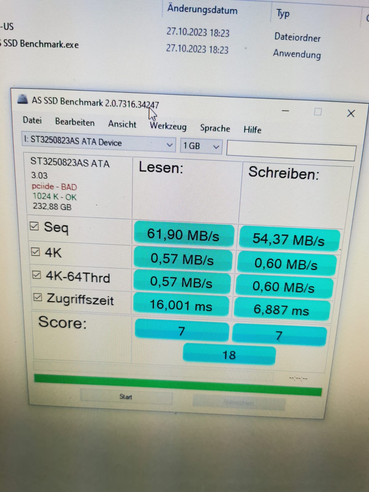 Recht erstaunlich: Die Seq-Schreibgeschwindigkeit der SSD lag bei nur 15 MB/s, während sie bei der HDD bei über 50 MB/s lag. Kann natürlich auch an Tasks im Hintergrund (Windows Updates?^^) gelegen haben.