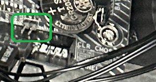 Da steht CLR Cmos, wenn da 2 Kontakte sind, wie die grün umrandeten, dann die mit einem Schraubendreher für 2 Sekunden kurzschliessen.