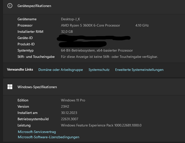 • WIN 11 Pro - Frisch vor 2 Wochen Neu installiert. Hatte die letzte HDD gegen eine m.2 ausgetauscht.