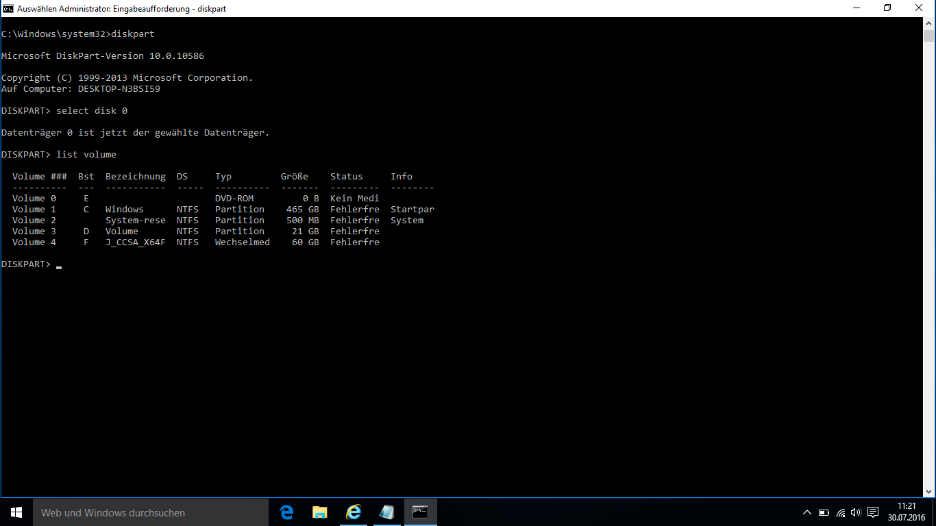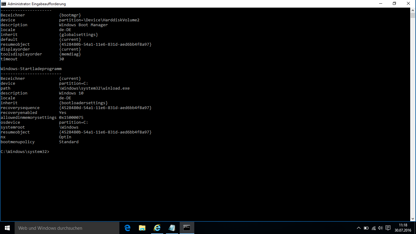 Dann versuchte ich die Methode per USB Stick. Also spielte ich eine passende 64bit Windows 10 Version mit dem Programm "Rufus" auf einen 64GB USB 3.0 Stick von CnMemory auf. Ging ohne Probleme. Eingelegt in einem USB 3.0 Slot startete ich den Rechner neu und siehe da. Er fragte ob er vom USB Port aus booten soll was ich bestätigte. Somit begann die normale Installationsprozedur. Bei der HDD Wahl erkannte er sofort die SSD ohne wenn und aber. Bezeichnung und Größe war korrekt. In diesem Moment aber sah ich folgendes. Das Gerät besitzt schon eine interne 21GB große SSD. Da ich aber alles auf der neuen SSD installieren wollte löschte ich erst einmal alle Partitionen (neue SSD 500GB, Systempartition 500MB,21GB interne SSD), formatierte diese und erstellte schließlich alles neu. Also alles wieder wie vorher. Ganz oben stand die 500GB SSD, dann wieder die 500MB Systempartition und danach die 21GB interne SSD. Ich wählte nun die 500GB als Installationsort für Windows aus und schloss ohne einen Fehler die Prozedur ab. Alles lief wie am Schnürchen. Voller Freude über den schnellen Bootvorgang steckte ich den USB Stick nun aus. Zur Kontrolle schaute ich mir im Explorer die Partitionen an. C: war die 500er mit aufgespieltem Windows, D: war die interne 21GB SSD und E: das DVD Laufwerk. Alle Laufwerke betriebsbereit und anwählbar. Als ich nun wegen neu installierter Updates den Rechner neu startete Begann mein Problem. Es kam folgender Text: "All boot Options are tried. Press <F4> key to recover with factory Image using Recovery or any other keys for next boot Loop iteration." Ich kann zu diesem Zeitpunkt per F2 jederzeit ins bios wechseln und Einstellungen vornehmen. Wie schon geschrieben, die Bootreihenfolge hatte ich mehrfach verändert. Ich dachte aber das er diese Reihenfolge sowieso der Reihenfolge nach durchgeht bis er etwas bootfähiges findet. Wie auch immer. Ich steckte den USB Stick wieder in den selben Slot und startete neu. Siehe da, er fragte ober vom USB stick aus booten soll. Wenn ja dann eine beliebige Taste drücken. Dies tat ich nicht. Somit ging er in den Win Bootvorgang über und alles ging wie wenn nie etwas gewesen wäre. Also lange Rede, kurzer Sinn: Mit dem USB Stick bootet er, ohne eben nicht. So wie ich das nun aus meinen Recherchen verstehe ist bei mir etwas mit dem bootloader im argen. Ich habe mal 2 Screenshots gemacht. Vielleicht könnt ihr dadurch sehen wo der Fehler liegt.