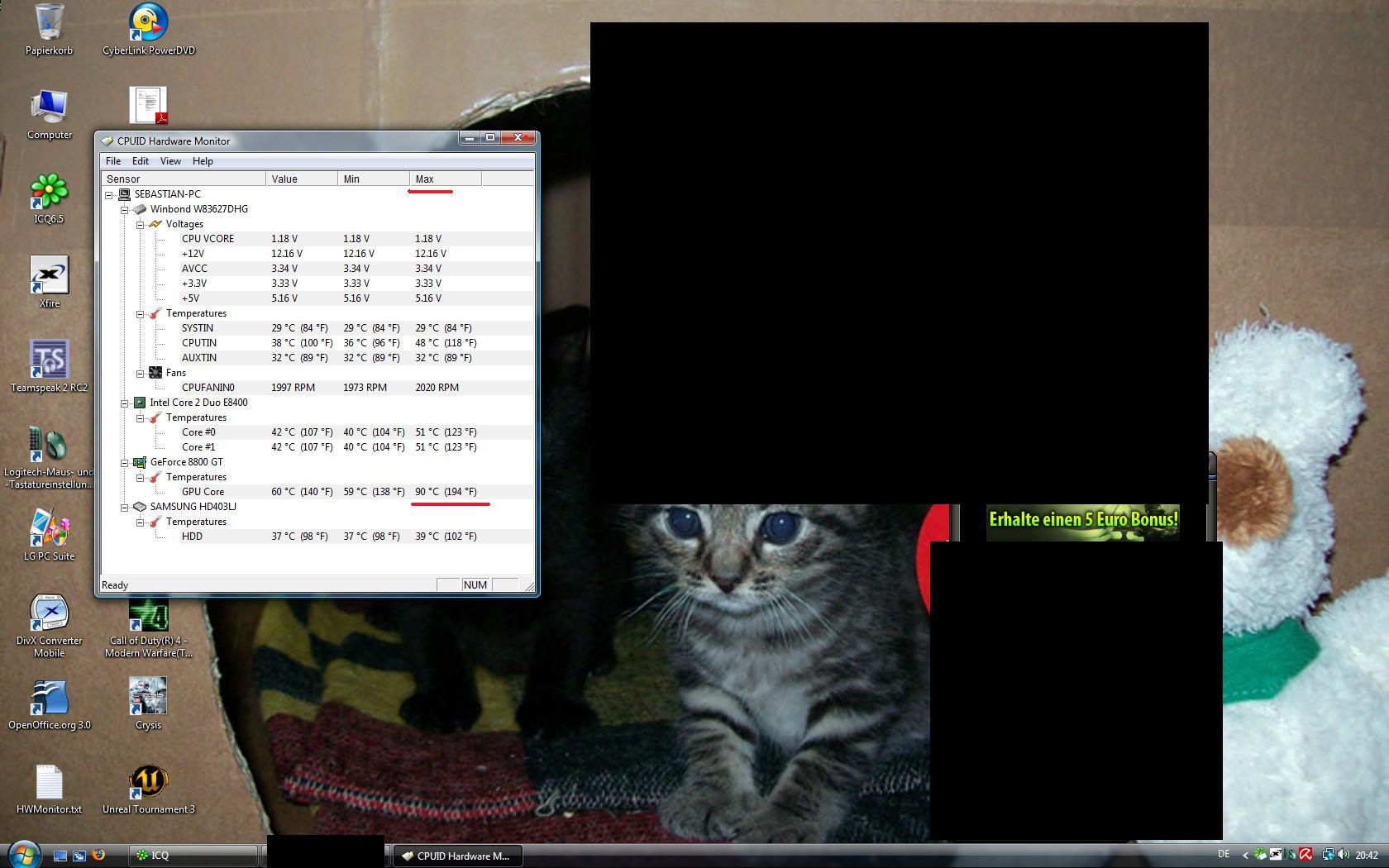 Ich habe einen Problem und zwar in letzter Zeit fängt mein Rechner immer abzustürzen nachdem ich ca. 10min CoD4 MP zocke.
