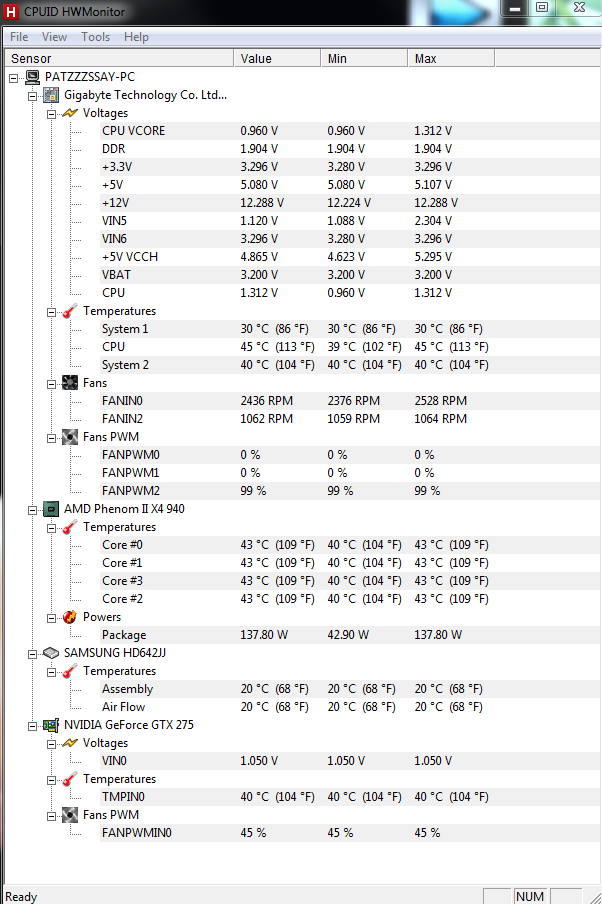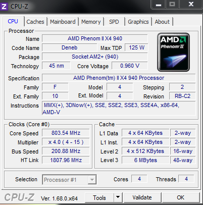 CPU: AMD Phenom II X4 940 (4x3GHz)