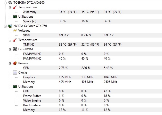 CPU Kerne : 35 - 40 Grad
