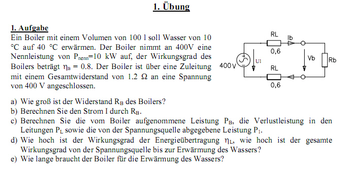 Der Boiler nimmt an 400V eine Nennleistung von P(nenn) 10 KW --> 10000 Watt auf. Hier wende ich die Formel R = U²/P an, das Ergebniss ist 16 Ohm. Das ist soweit klar.