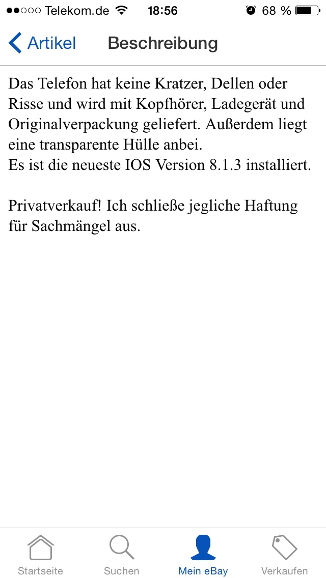 Hallo Leute, ich hoffe es passt hier rein, ich habe bei eBay ein iPhone 5s Ersteigert. Soweit ist auch alles gut. Hab das Bild der Anzeige mal eingefügt. Nun habe ich das Problem das auf der Rückseite das Apple Logo Kratzer hat, nicht wie in der Beschreibung angegeben, aber viel schlimmer finde ich das da ein China Ladegerät plus lade Kabel bei ist , was erstens sehr warm wird und zweitens ich das gerade beim Laden manchmal überhaupt nicht nutzen kann weil Touchscreen total spinnt, erst wenn ich es abziehe kann ich das Gerät normal nutzen. Der Verkäufe weiß von nichts. Welche Optionen habe ich ? Hatte sonst nie Probleme.