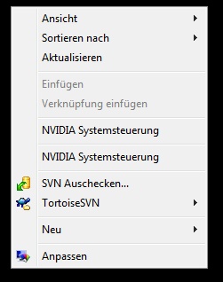 hab mal wieder ein kleines Problem: Beim Rechtsklick Desktop öffnet sich ein Fenster, bei dem die Auswahl "NVIDIA Systemsteuerung" doppelt vorhanden ist (siehe Screenshot). Ist mir bis jetzt noch nie aufgefallen.