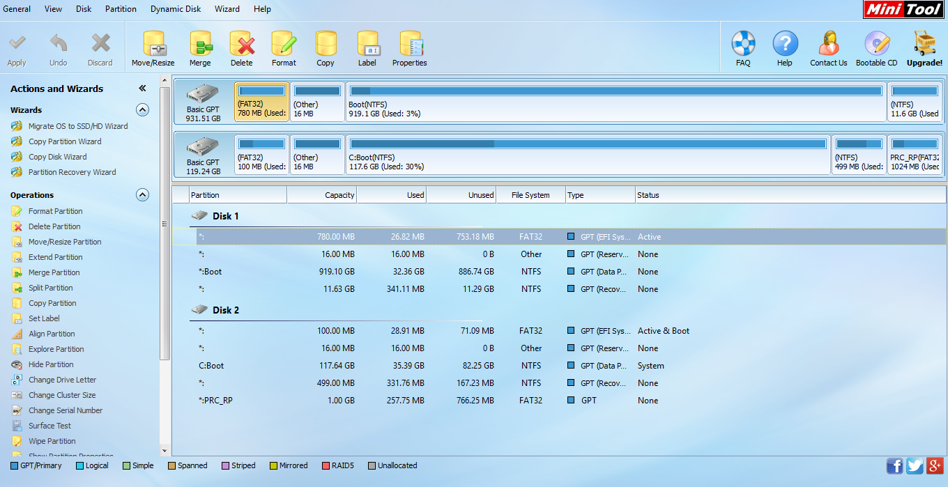 Das ganze habe ich mit dem "Mini Tool Partition Wizard" durchgeführt. Vielleicht kann jemand damit etwas anfangen und mir sagen wie ich, zumindest meine Recovery, wiederherstellen kann