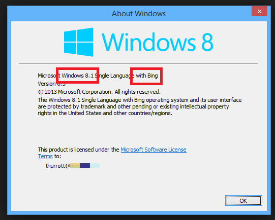 "Wenn Sie Windows 8.1 mit Bing verwenden, erhalten Sie von Ihrem Gerätehersteller Informationen zum Abrufen von Installationsmedien für Ihre Windows-Edition."