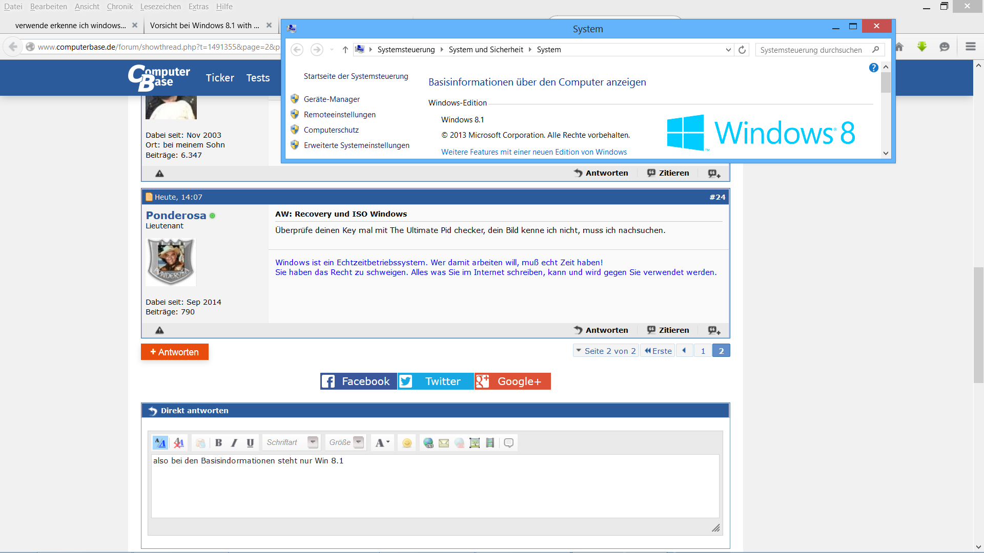 Aber wie Du siehst, der TE hat Win 8. Asus wird einfach das NB mit Win 8.1 installiert haben, nachdem Win 8.1 auch erschienen ist. Vorher ging das ja schlecht...