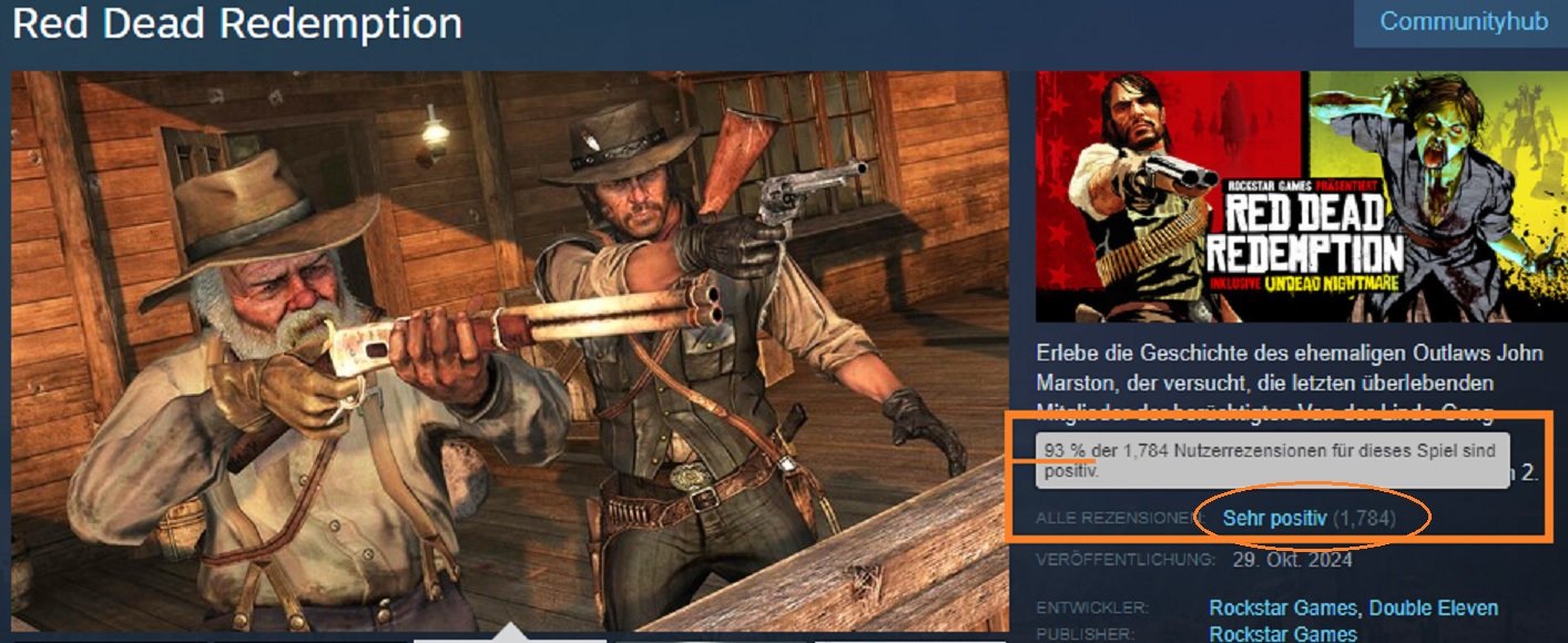 Es gibt so viele andere Spiele, in die ich eher 40 bis 50 Euro anlegen würde als in ein ziemlich betagtes Spiel wie den Red Dead Redemption PC Port, welcher eher ein schnell entwickelter Cashgrab (ähnlich der GTA Trilogie) ist (nachdem ein auf dem Level des zweiten Teils entwickelter erster Teil jahrelang von Rockstar/Take 2 Interactive ignoriert wurde) und so etwas unterstütze ich dann (aus Prinzip) eher ungerne (ähnliches gilt auch für das relativ teuer angesetzte Dark Forces Remaster bspw.), auch wenn ich das Original noch nicht gespielt habe (denn alles kann man in seiner Lebzeit sowieso nicht durchspielen und muss Prioritäten setzen).
