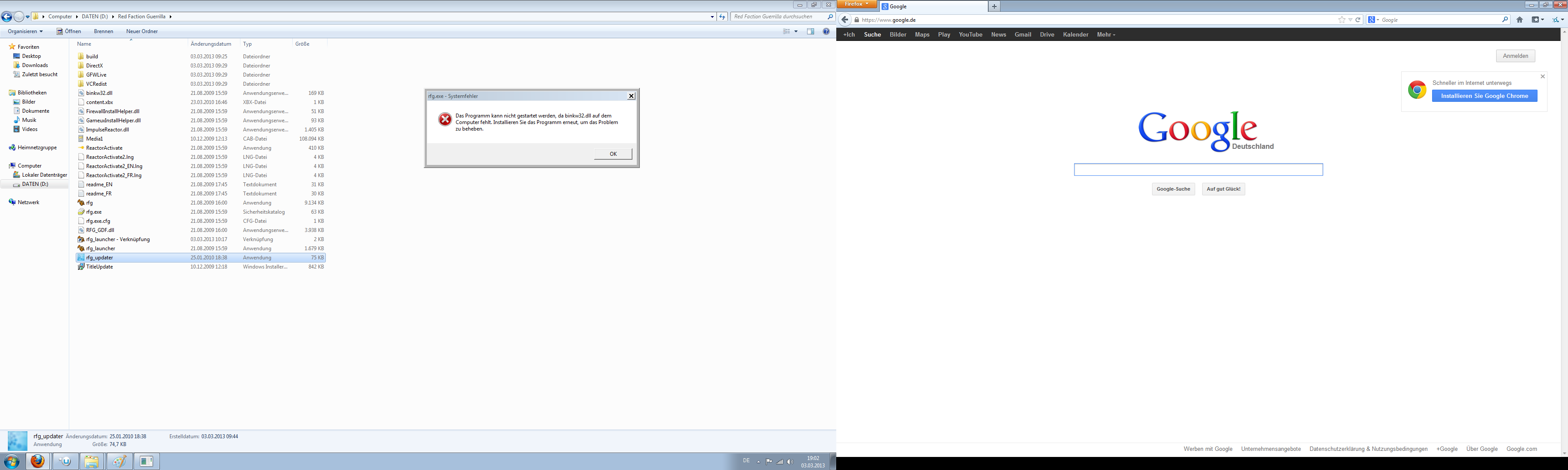 Ich habe jetzte einfach alle Dateien aus dem Download in den Red Faction Speicherplatz extrahiert?! Dort dann die update exe ausgeführt. Dann denkt man, dass man fertig ist und spielen kann, aber wie das Schicksal es will kommt folgende Fehlermeldung.