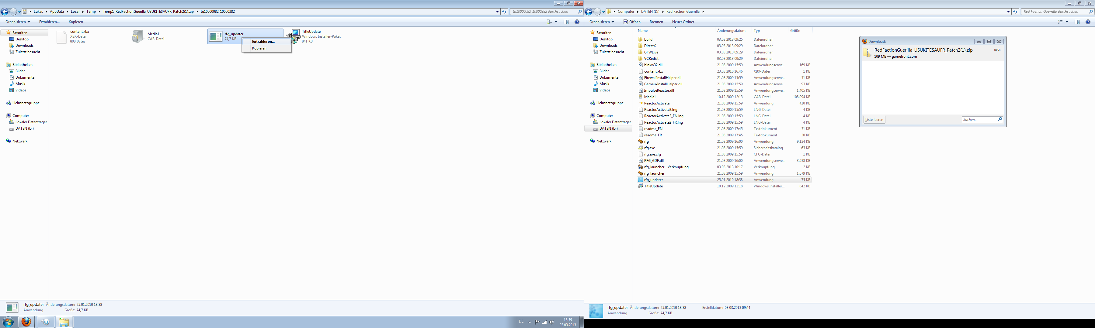 ich habe mir Red Faction Guerrilla für den PC gekauft, da es mir auf der PS3 sehr gut gefallen hat. Bei der Installation musste ich feststellen, dass man Windows-Live braucht. Im Internet habe ich gelesen, dass man das braucht damit man im Spiel speichern kann! Da wird man dazu gezwungen sich so einen Dr*** runter zu laden, Darksiders braucht Steam, Far Cry Uplay und Bf3 Origin....aber das ist ein anderes Thema. Mein Problem ist jetzt, dass das Spiel zu schnell abläuft, hyperspeed bei windows 7 64 bit nennt sich das anscheinend. Dann habe ich mich im Internet nach einem Patch erkundigt und auch zwei gefunden. Schlimm genug das dieses billige Windows-Live das nicht automatisch geupdated hat, musste ich mir diese dann auch noch manuell herunterladen. Ich habe die UK Version und mir auch für diese den passenden Patch heruntergeladen. Man bekommt folgende Hinweise: