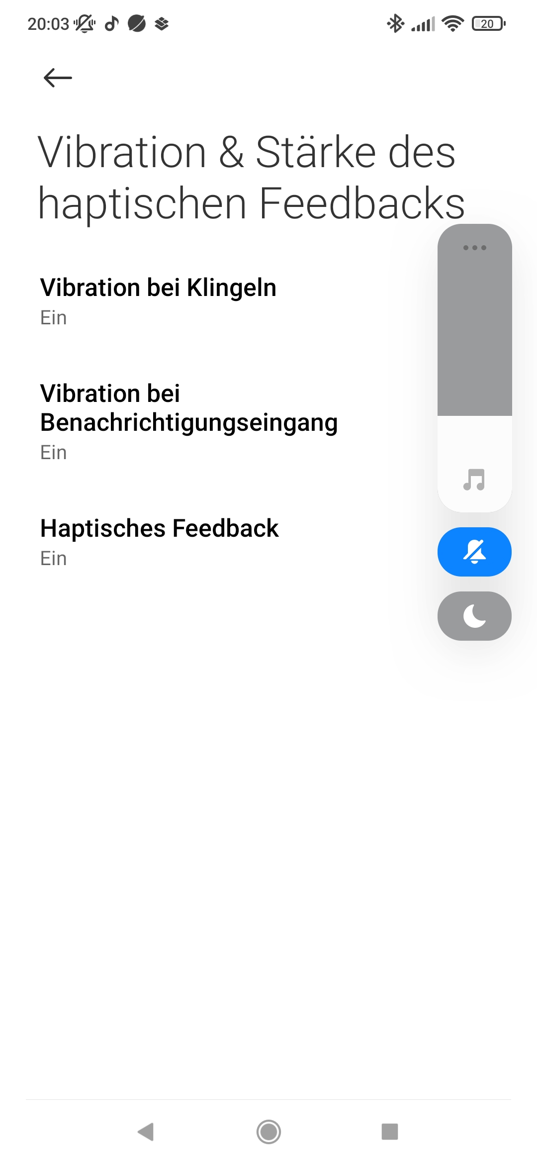 In den EInstellungen unter "Ton und Vibrationen" steht "beim tippen vibrieren" auf "Mittel".