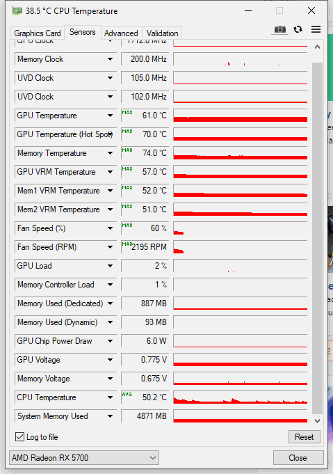 Habe nun noch mal den 3D Mark Time Spy laufen lassen. Hier wird die CPU nur beim dedizierten CPU Test wirklich heiss ~80 Grad, im Schnitt liegt sie bei knapp über 50 Grad (52,5 direkt nach dem Test im Durchschnitt, Max bei knapp über 80), während die Graka schon hart getreten wird. Die Temperaturen sind hier aber deutlich besser als bei Gears, obwohl die GPU stärker beansprucht wird. Sind fast schon Traumwerte für eine 5700, allerdings nur weil der Lüfter hier mal richtig Gas gegeben hat (im Maximum bei 60%), sodass die GPU nicht mal über 61 Grad gekommen ist. Wundert mich, dass der Lüfter bei Gears hier so viel entspannter reagiert. Eigentlich wird doch lediglich nach Temperatur reguliert?