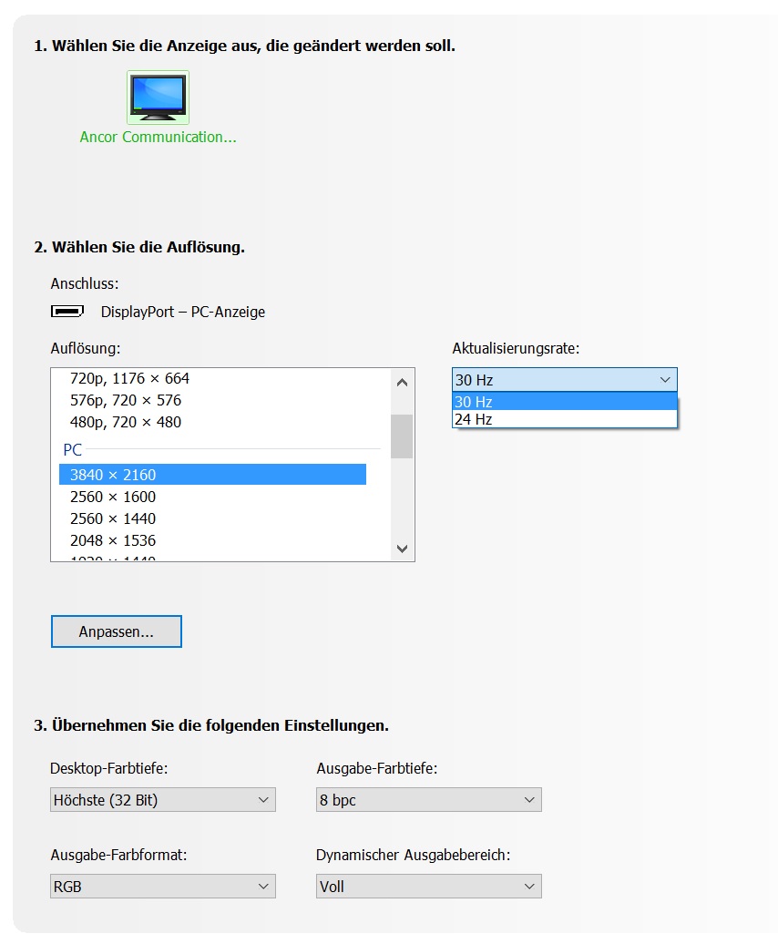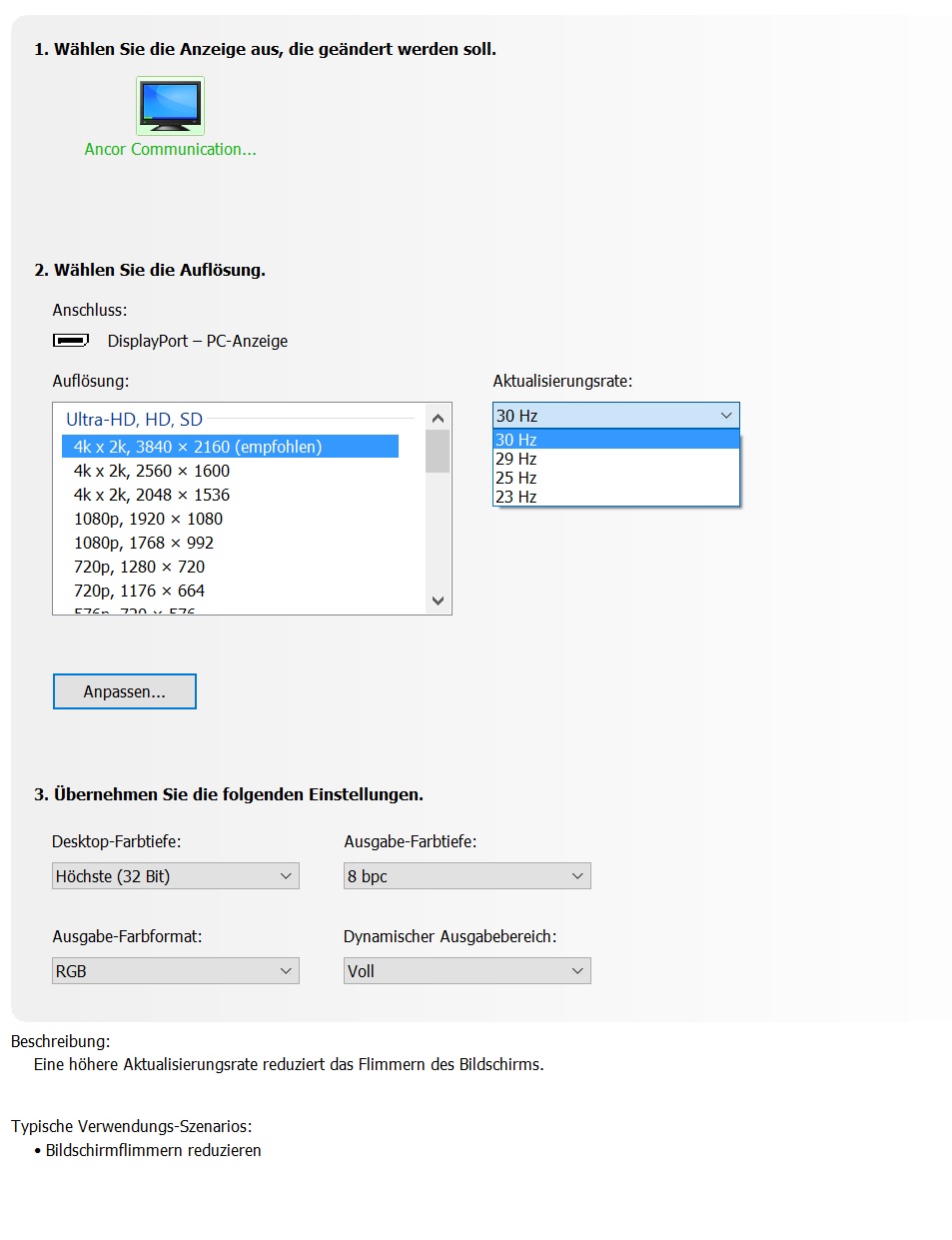 Aber leider kann ich seit heute nur noch 30Hz auswählen. Ich habe keine Ahnung, woran das liegt. kann mir jemand sagen, was da falsch ist? Im Treibermenü kann ich nichts anderes auswählen?