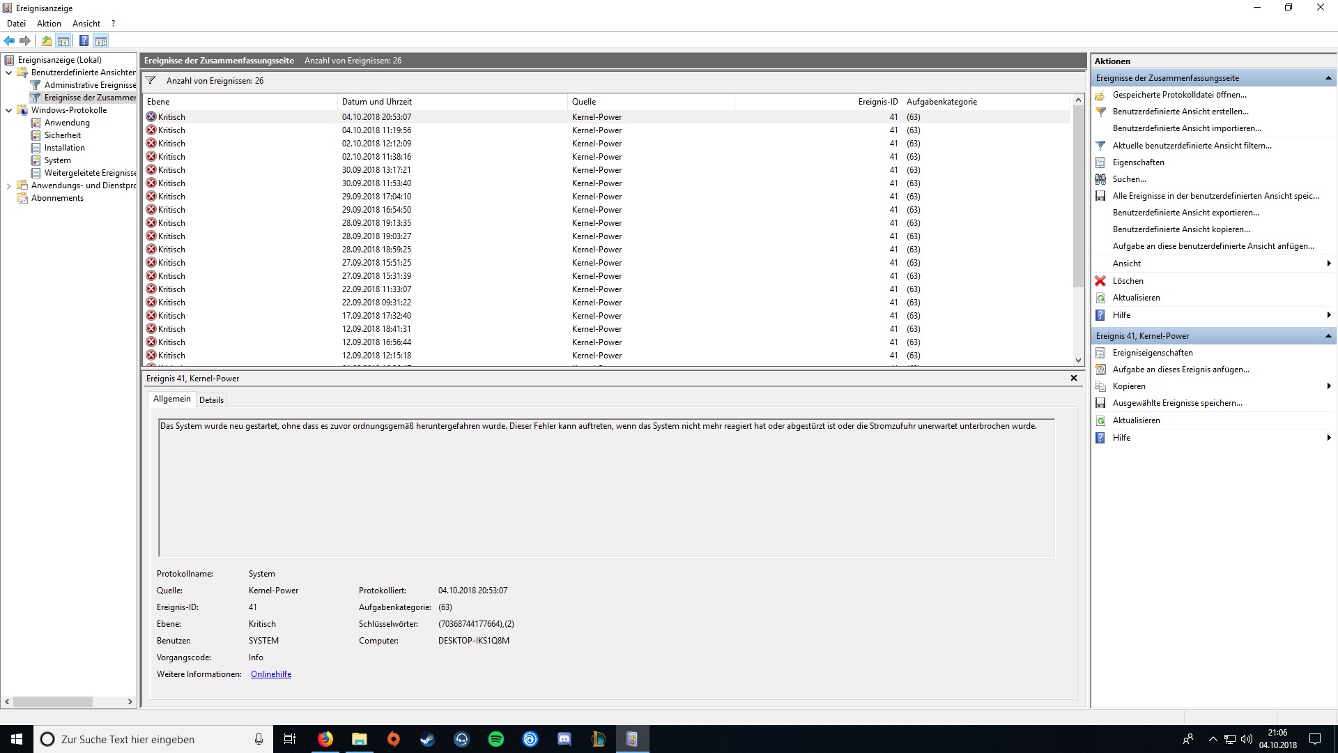 wie alt ist den das netzteil? schon das neuste windows 10 installiert? 1809?