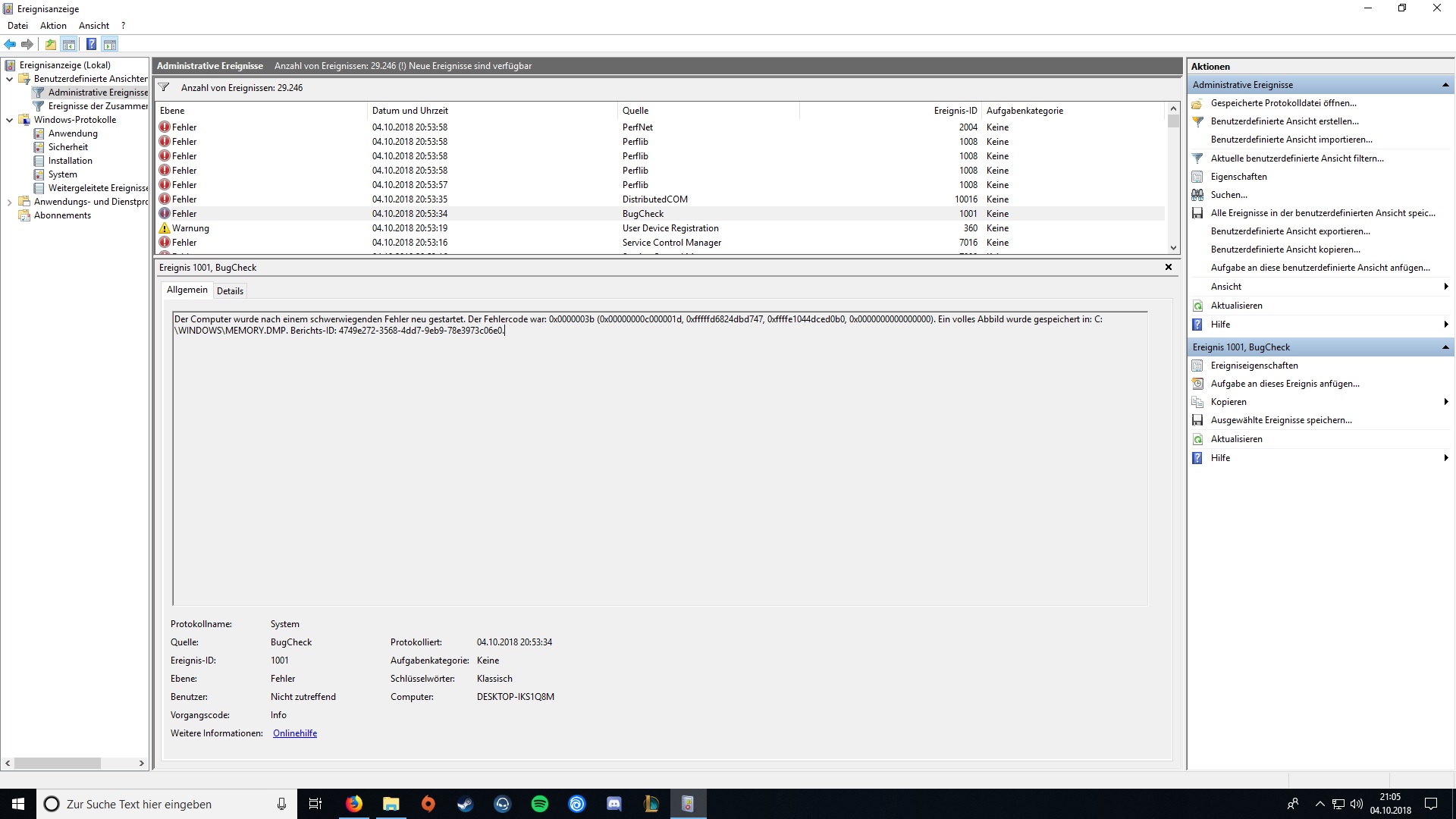 Im Anhang habe ich mal mein Fehlerprotokoll und meine Specs beigefügt ( falls das was hilft).