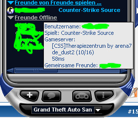 Zu der Sache mit der Friendliste: Es gibt eine empfehlenswerte Alternativlösung. xFire. Da kann man auch direkt auf den Server seiner Freunde connecten. Und es unterstützt sehr viele Spiele. Aber das nur am Rande. Is ja Off-Topic. Wollte nur einmal darauf hingewiesen haben.