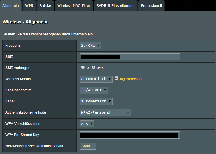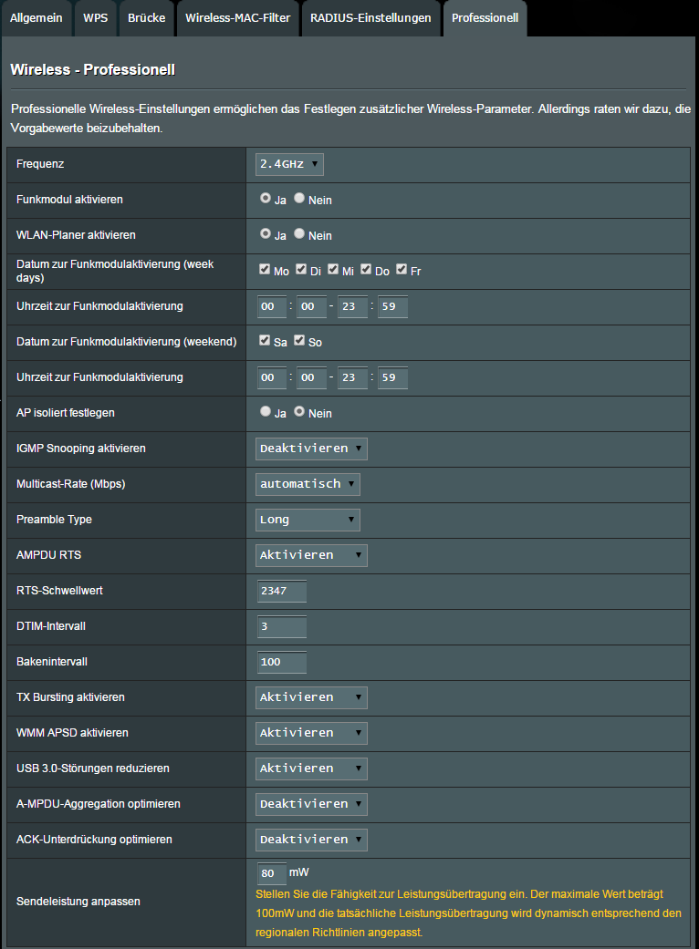 Vor kurzem musste ich den Asus Router nochmal zurücksetzen und nach dem Einrichten brach das Netzwerk zumindest mit einem meiner Geräte immer wieder ab und zwar in einem verdächtigen Rhythmus (siehe Bildanhang).