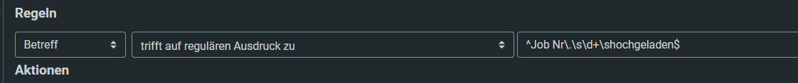 ich möchte Betreffe wie "Job Nr. 123 hochgeladen" in Roundcube verschieben lassen. dazu habe ich diese Regex-Regel angelegt doch sie greift nicht. das Regex muss stimmen, ist von Chatgpt. mit "Betreff enthält Job Nr." greift der Filter. Sieht jemand einen Fehler ?