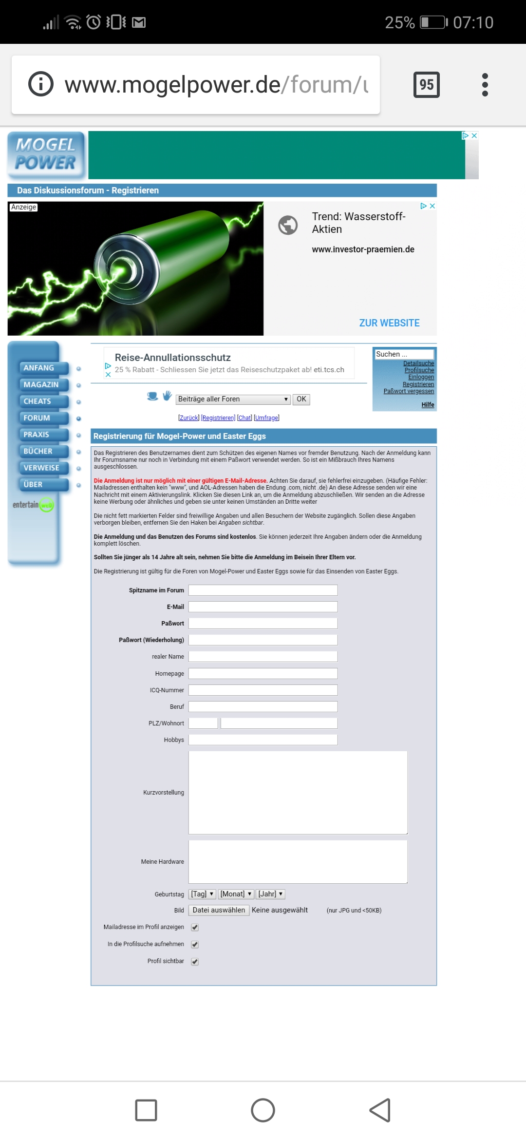 Kennt jemand einen Weg, wie man sich trotz fehlendem Anmeldefeld im Forum registrieren kann?