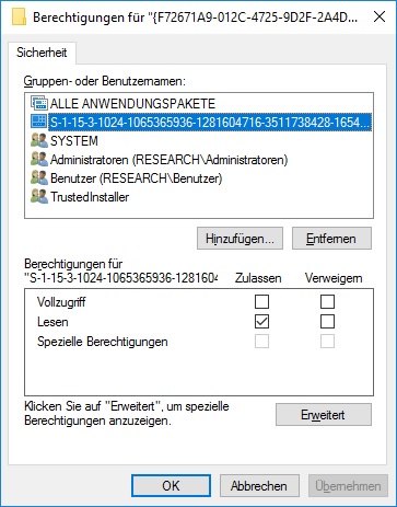 Da wollte ich es, wie ich es auch schon in anderen Windows Versionen kenne, in der Registry beheben, da es sich um Berechtigungsprobleme handelt.