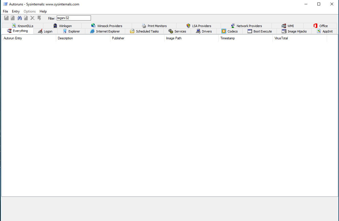3. Nun sollte man bereits im Reiter Everything sein - dort oben im Filter Eingabefeld "regsvr32" eingeben.