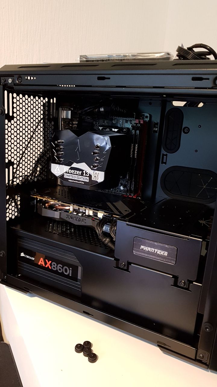 Auf dem Bild kann man den vorhandenen platz sehen. Rechts unten soll die pumpe hin. Das blech mit dem. Phanteks aufkleber könnte noch entfernt werden.