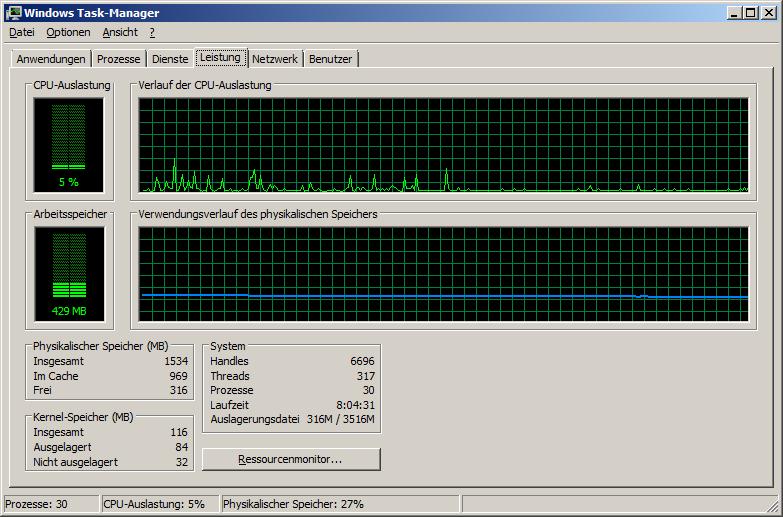 Wobei Du von den 4GB nur 2GB abbekommst (ich weise da gerne des öfteren drauf hin). Der Rest geht in die Swap-Datei (es sei denn Du hast Dein System mit /3GB instabil gemacht^^)