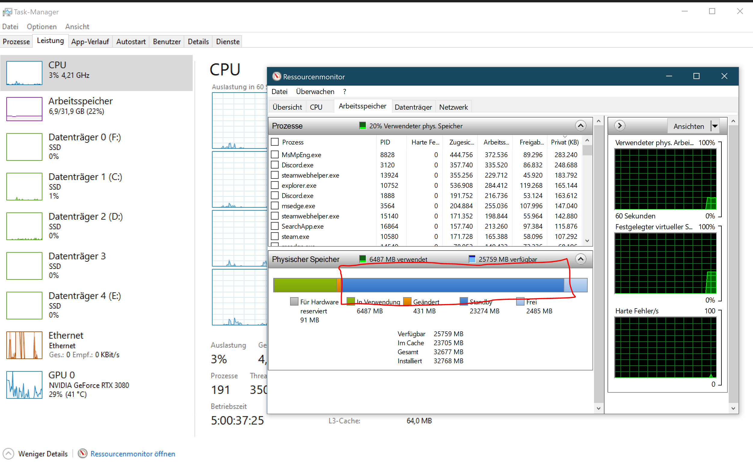 Dennoch liegt die Auslastung in neuen Spielen konstant hoch und für ein neues System würde ich heutzutage auch gleich auf 32GB setzen. Die Anforderungen werden ja nicht geringer und es ist nur eine Frage der Zeit wann die 16GB wirklich zum Flaschenhals werden. Mit 32GB ist man da für die kommenden Jahre deutlich besser gerüstet.