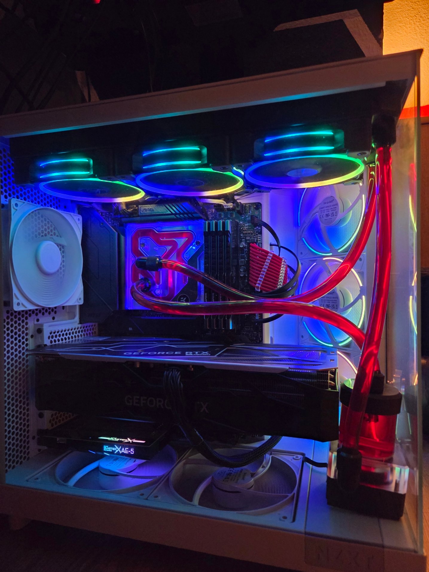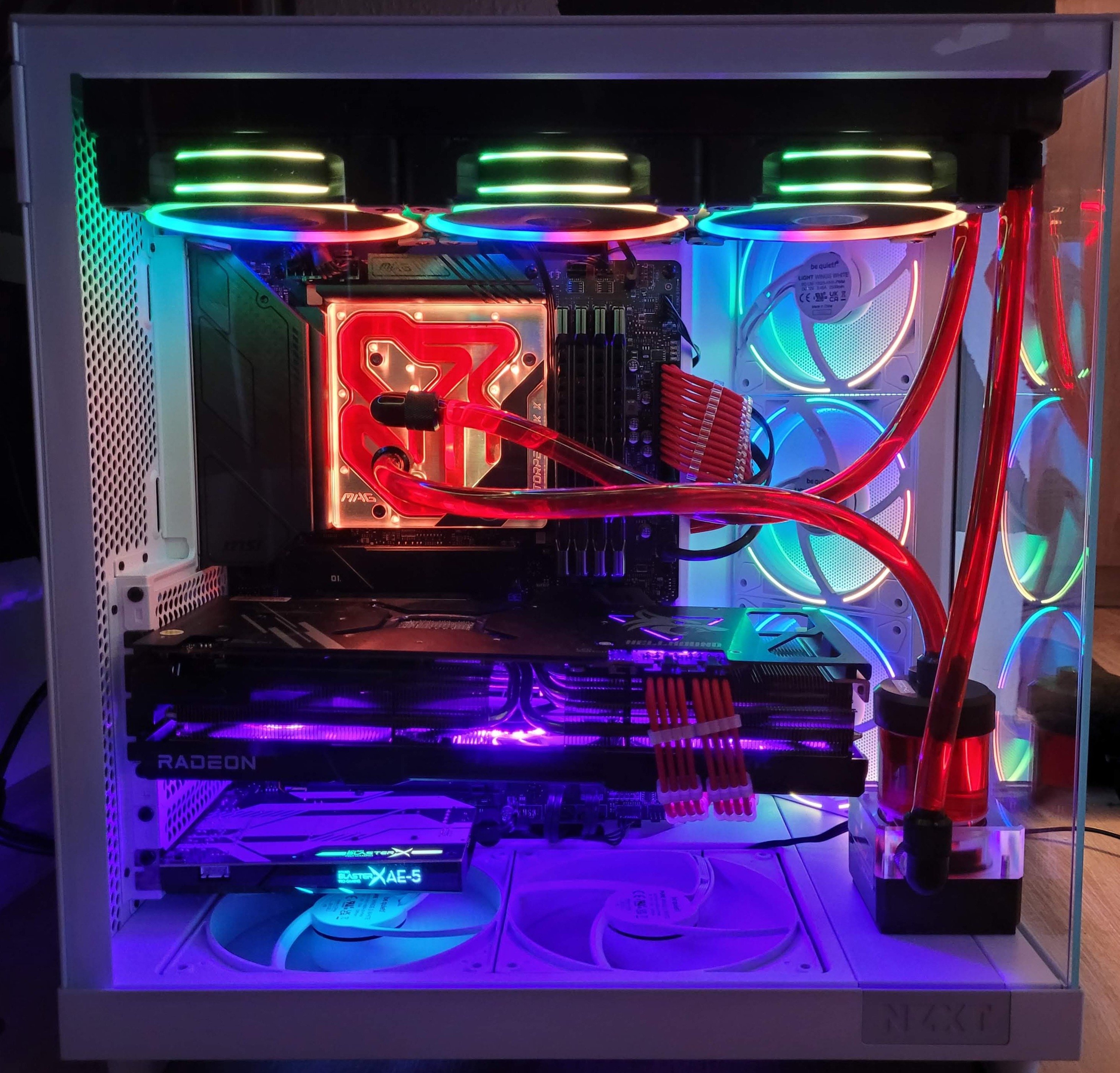 Vorher war noch ein Be Quiet Silent Loop 360 verbaut der bis auf die Lüfter hauptsächlich von Alpha Cool stammt womit es sich um eine ungewöhnliche AIO handelte die Custom fähig ist mit 3/4 Zoll Gewinde. Hab das damals schon Umgebaut mit durchsichtigen Schläuchen und einem Ausgleichsbehälter wo man super den Wasserfluss sehen konnte. Das komplette Setup besteht aus Kupfer und der Umstieg auf die DDC "China" Pumpe war eine deutliche verbesserung. 2500 - 2700 RPM läuft die Pumpe absolut Silent mit meiner Einschätzung vierfacher Durchflussmenge.