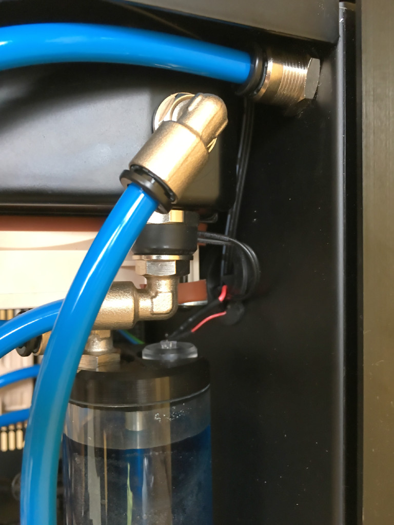 Ich hab‘ daher den Kugelhahn wieder ausgebaut und statt dessen als Ablaufhahn genutzt und bleibe bei der Parallelschaltung, schlichtweg weil‘s in meinem Gehäuse so mit der Verschlauchung einfacher ist.