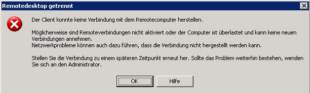 "Der Client konnte keine Verbindung mit dem Remotecomputer herstellen.