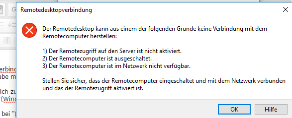 Ich habe es aber ohne hinzufügen probiert und dann kam eine Fehlermeldung, habe ein Screenshot hier eingefügt. Also beide sind mit dem gleichen WLAN verbunden und der Computer, auf den ich zugreifen möchte ist natürlich eingeschalten.