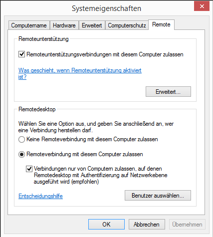 Was sagen denn die Systemeigenschaften unter Remote?