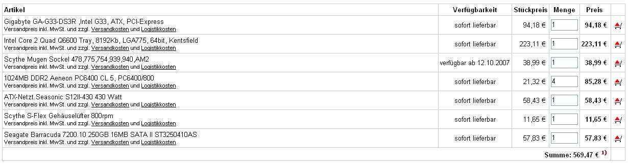 CPU: Intel Core2 Quad Q6600 G0 -> ca. 225,-