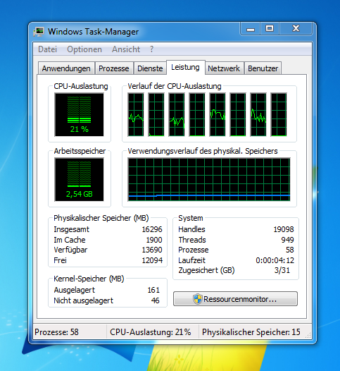 Weiterhin wäre es dann richtig, wenn ALLE Cores (und Threads) auf 98 - 100 % stehen.