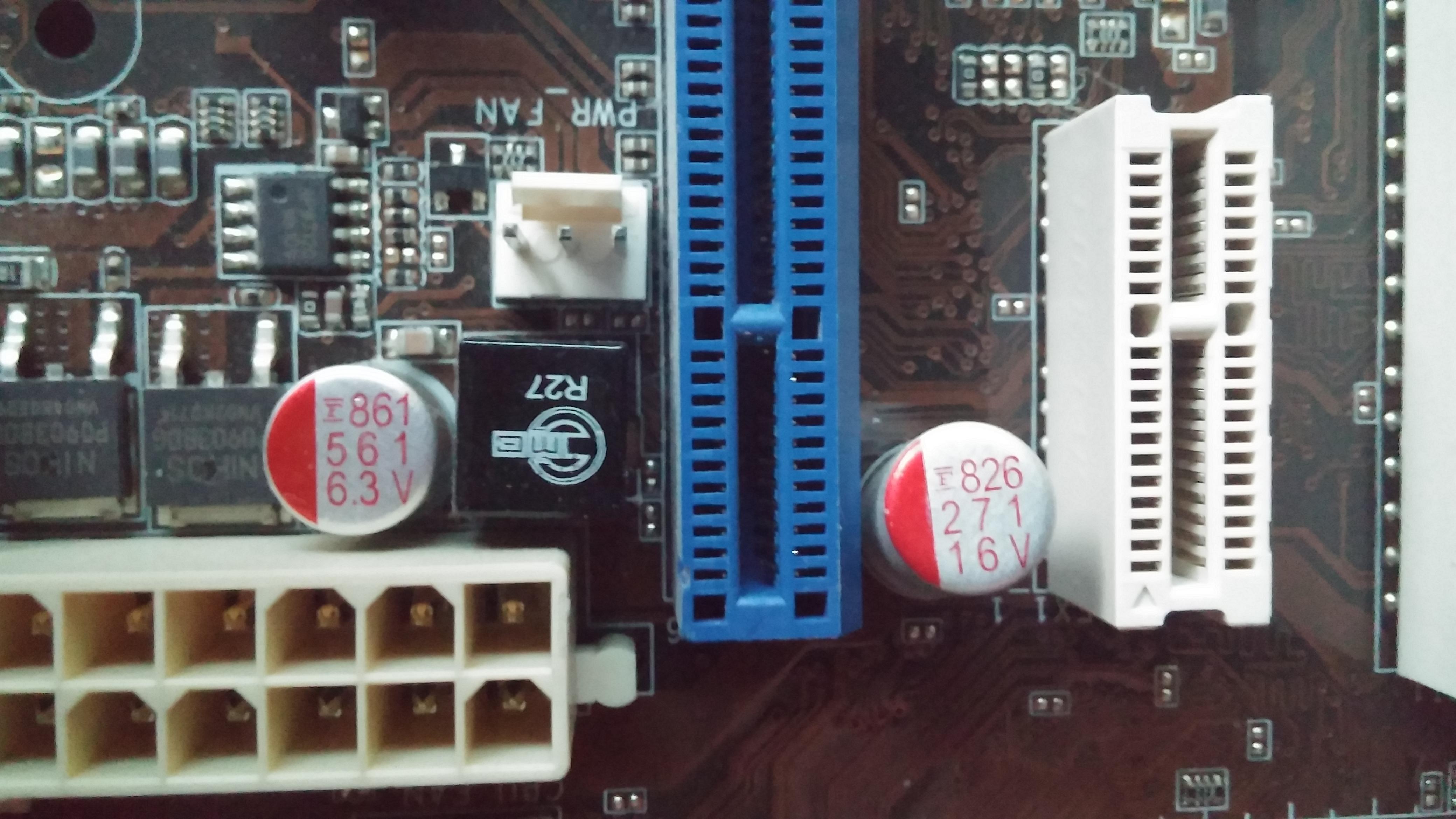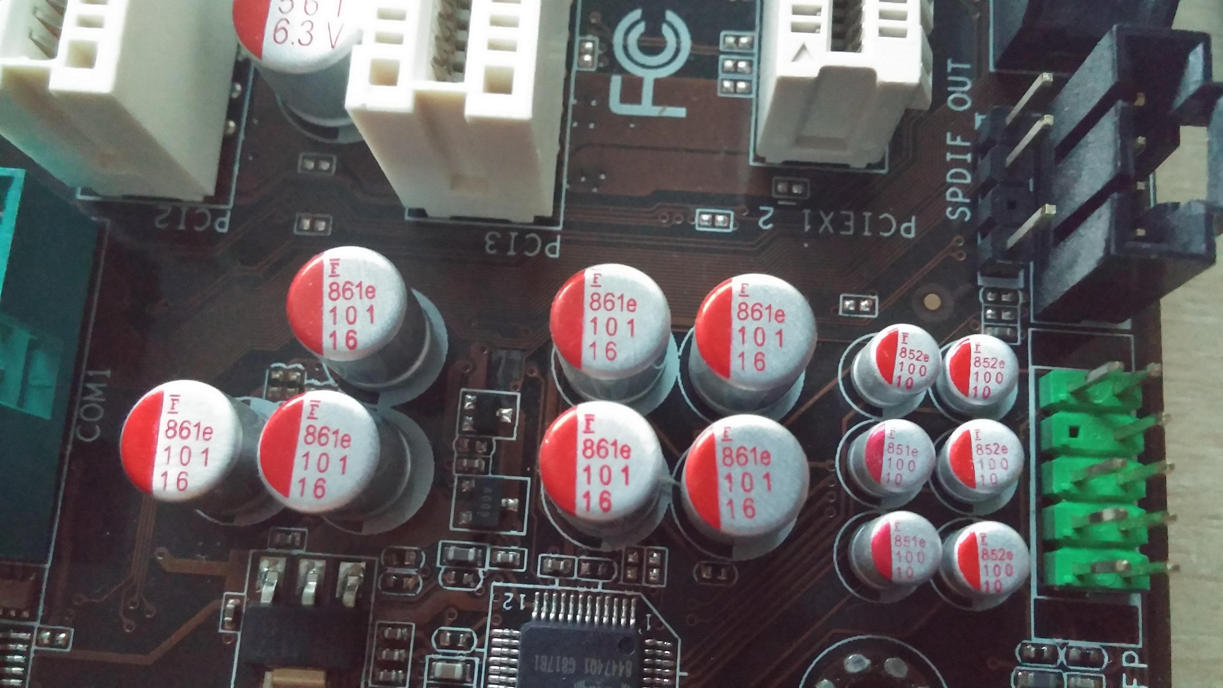Ich habe noch ein kaputtes Mainboard rumliegen, auf dem Polymer-Elektrolytkondensatoren verbaut sind.