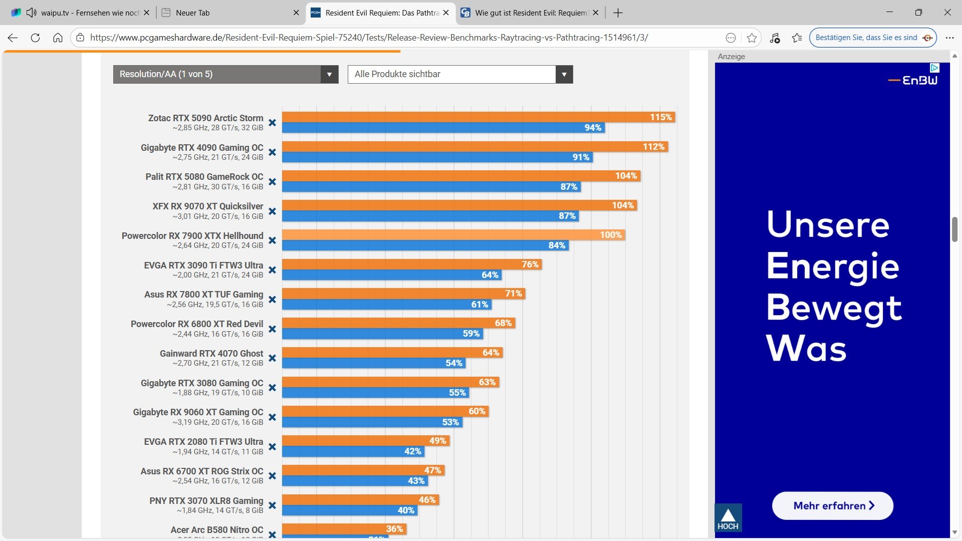 GameGPU und PCGH testen beide mit Quality. Und die Benchmarkszene betrifft in beiden Fällen eine Sequenz in den Außenbezirken in der Stadt. Und auch wenn hier ein anderes Preset als bei Wolfgangs Test gewählt wurde gewählt wurde, die Ergebnisse so extrem weit auseinander, dass das mE schwerlich durch einen bloßen Szenenwechsel (auch hier sind es jeweils Außenbezirke) oder eben ein anderes DLSS Preset erklärbar wäre. Bei der PCGH ist die 4090 so schnell wie die 5070ti, hier ist sie satte 41% schneller.