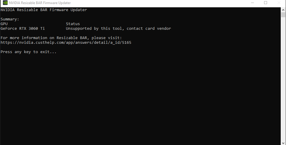 Das Tool geht nicht bei allen RTX. Scroll mal ganz runter hier https://nvidia.custhelp.com/app/answers/detail/a_id/5165/~/nvidia-resizable-bar-firmware-update-tool und folge den Schritten für deinen HerstellerMpiii schrieb:Ich habe die 3060 Ti, also soll ich mal das Motherboard updaten?