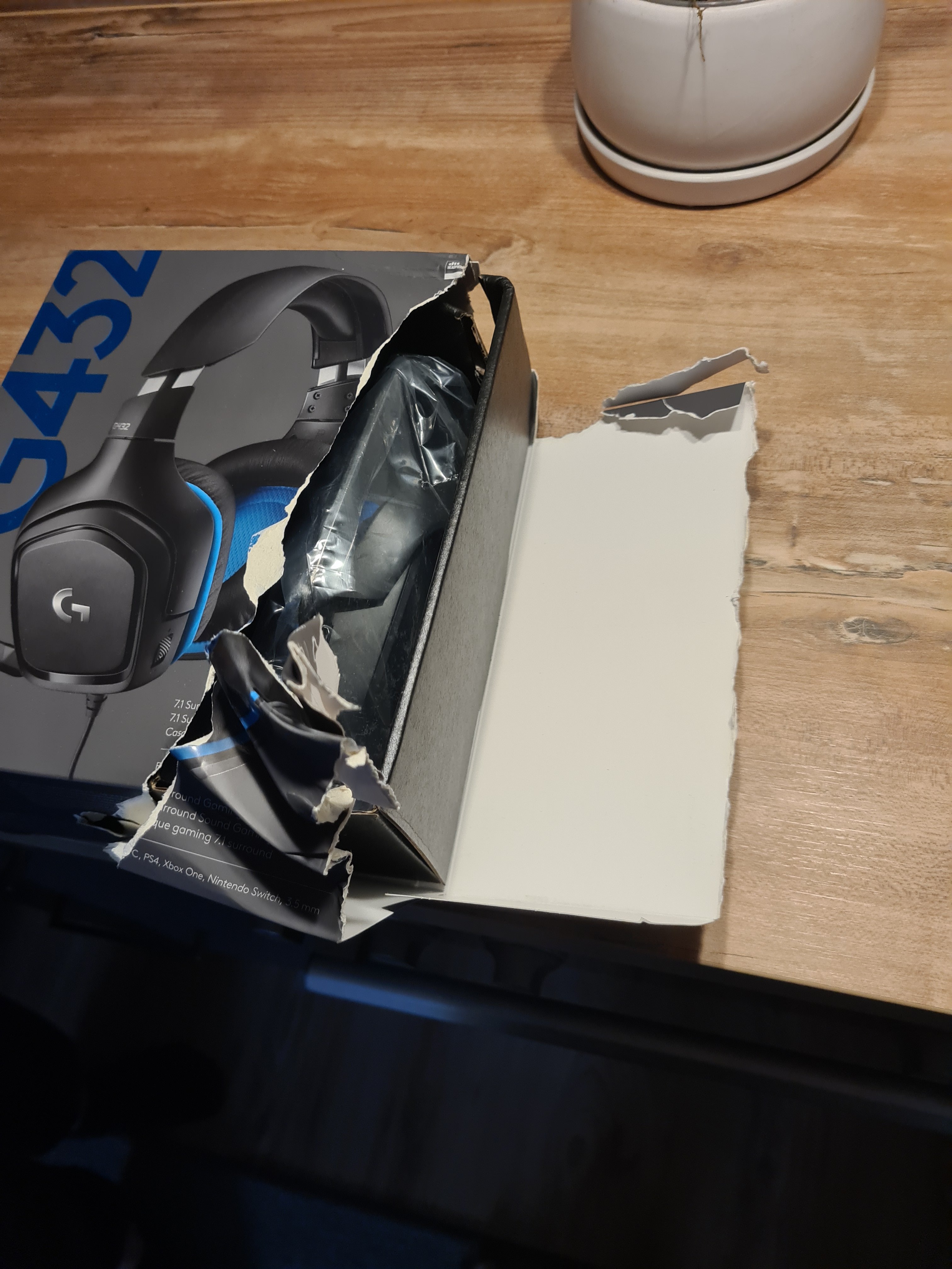 kurze Frage habe über Geizhals bei JB Computer Kopfhörer bestellt. Logitech G432. Als ich den Versandkarton öffnete, sah die Verpackung so aus (siehe Bild 1) was mich selbstverständlich schon stutzig machte. Natürlich schaute ich mir das Headset daraufhin genauer an und musste feststellen das diese nicht neu sind und auch schon Gebrauchsspuren haben die bestimmt nicht vom Werk kommen (siehe Bild 2 u.3).