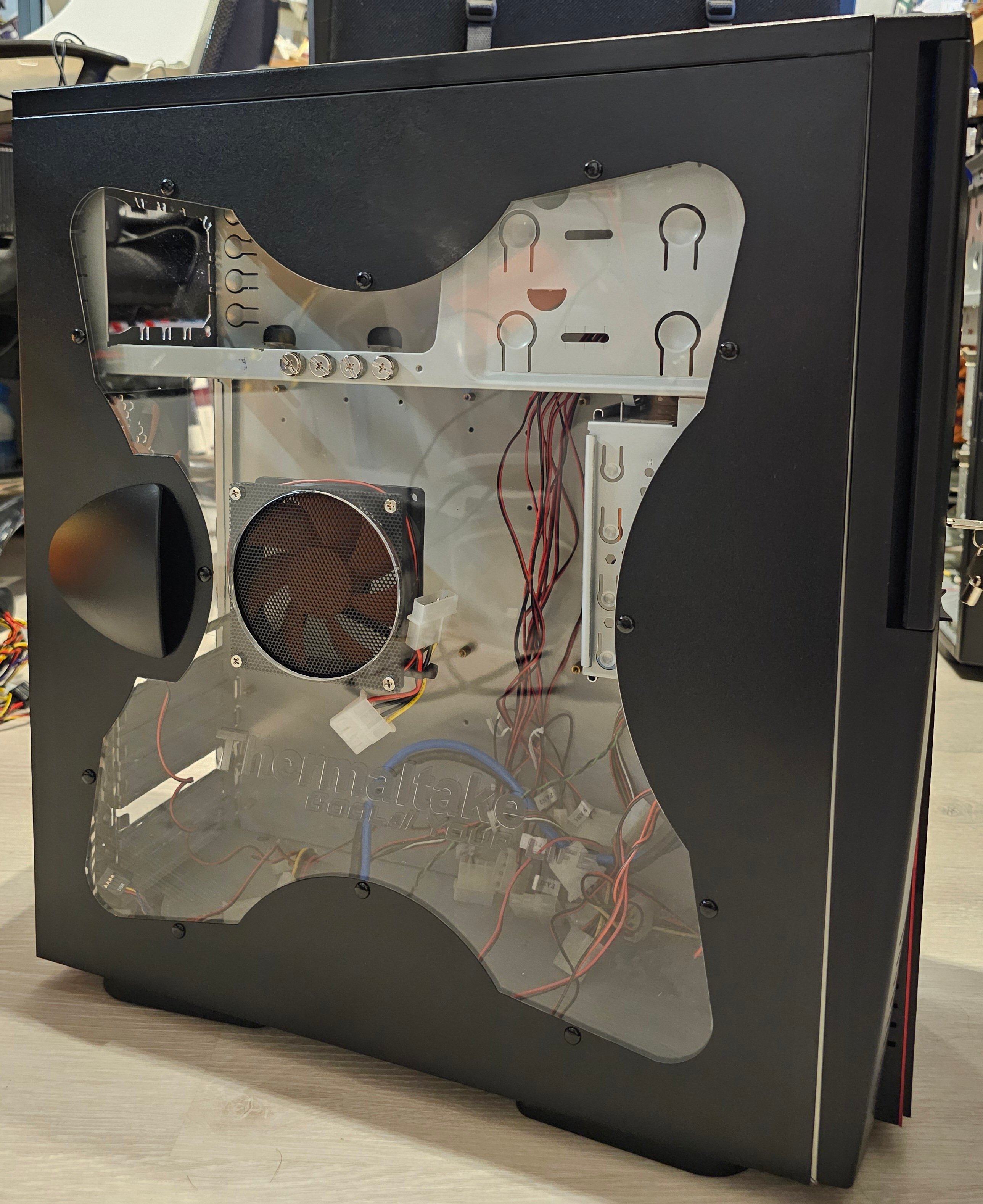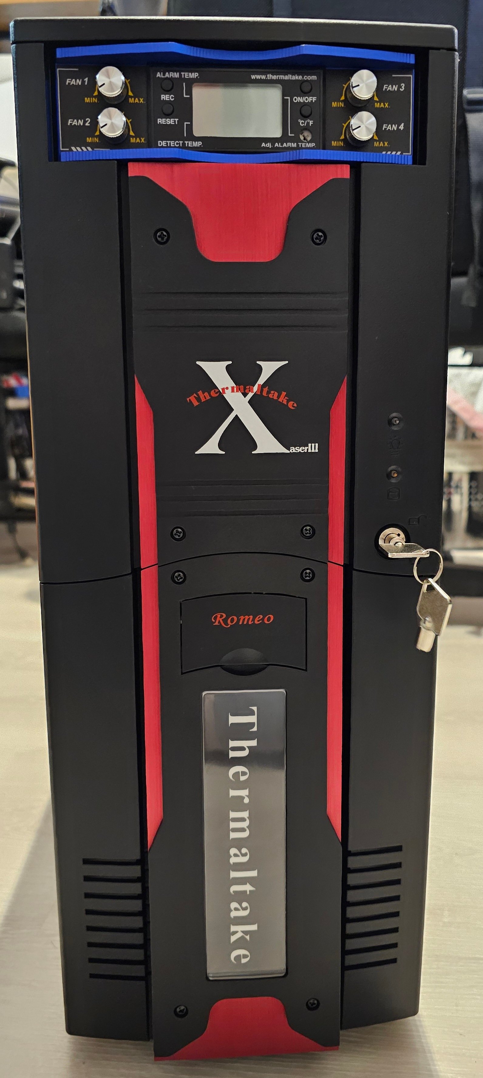 Es handelt sich um ein Thermaltake Xaser III welches uns @Glazzmann freundlicherweise für das Gewinnspiel zur Verfügung stellt. Das Gehäuse ist in sehr guten / guten Zustand. Die Scheibe ist tadellos, die Lüftersteuerung läuft und sogar die Schlüssel sind dabei. Das Gehäuse ist Ende 2002 auf den Markt gekommen und passt smoit sehr gut zu unserem Projekt!
